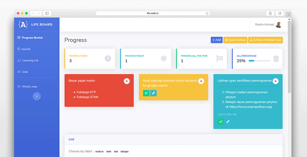 Life. A simple complex to do list to organize your life needs. Life has been placed as 7th favourite site at Recloud Challenge Indonesia. Featured on Alibaba Cloud Blog